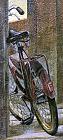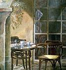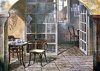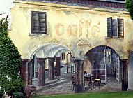 Die Wandmalerei durchbricht die Eintönigkeit der angrenzenden Mauer in einem Berliner Gartengrundstück. Ein Hauch mediterraner Nostalgie. Kundenwunsch wahren: von der Zeit gezeichnetes südländisches Ambiente, ungeschminkt, wie aus dem Leben gegriffen, altes Fahrrad, Tonet-Einrichtung. Das Wandgemälde wurde in etwa 4 Wochen fertiggestellt.